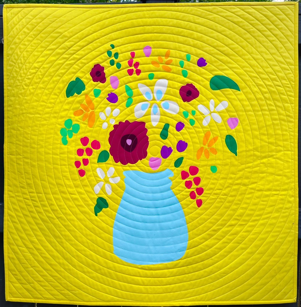Sunny Bunch Sunny Bunch, 36′ x 36″, 2024 Pattern published by The Modern Quilt Guild VAE Raleigh Street Frame Exhibit, 2026